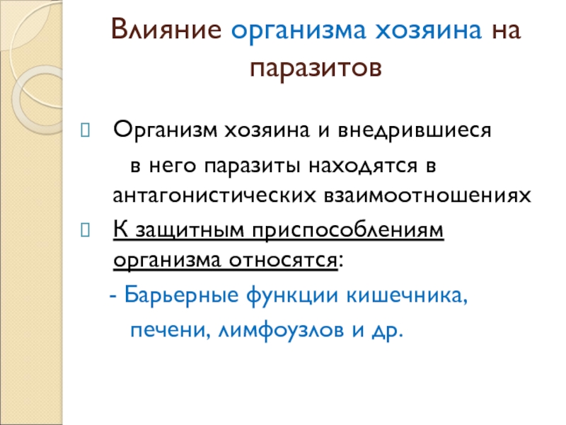 Слайд 8Влияние организма хозяина на паразитов