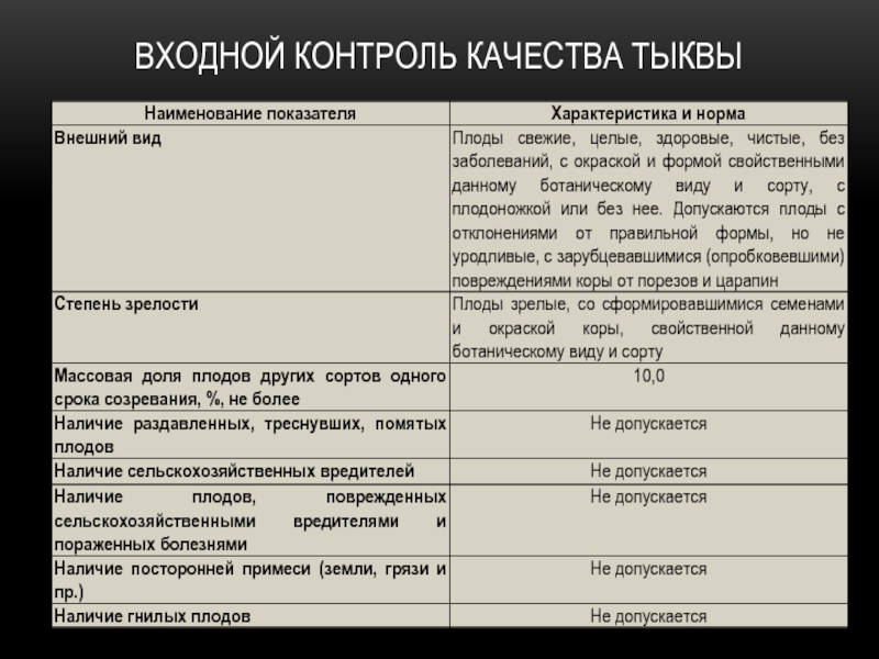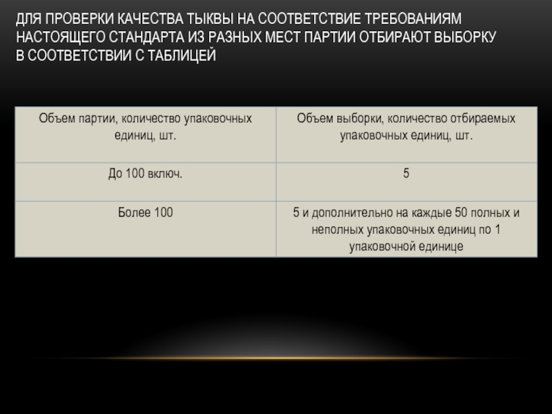 Слайд 5Для проверки качества тыквы на соответствие требованиям настоящего стандарта из