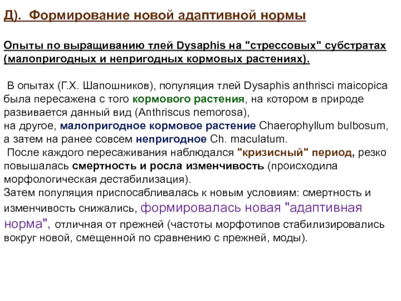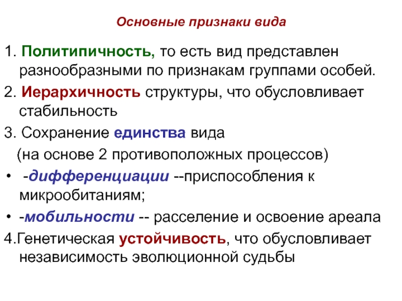 Основное внимание было обращено на устойчивость вида как рез-т эволюции, выраженной в морфофизиологической однородности.