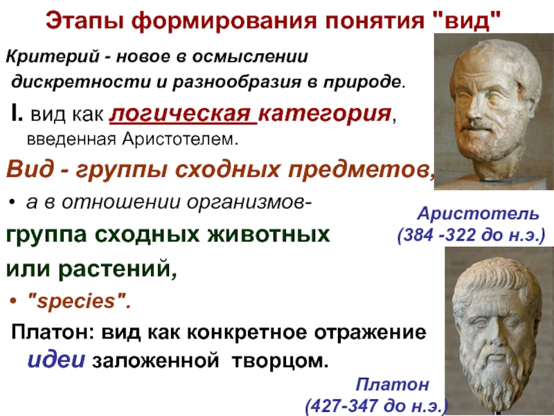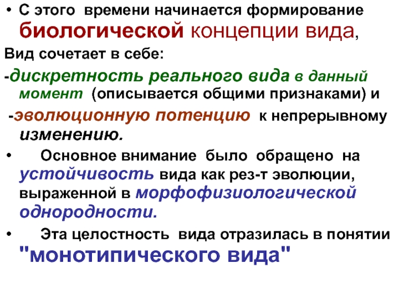 Слайд 10С этого времени начинается формирование биологической концепции вида,