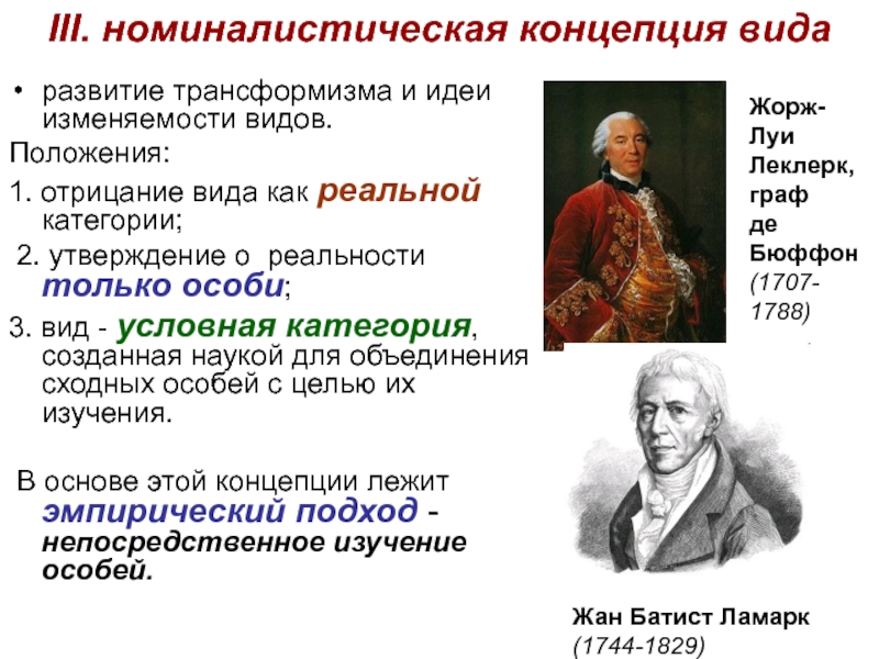 В основе этой концепции лежит эмпирический подход - непосредственное изучение особей.