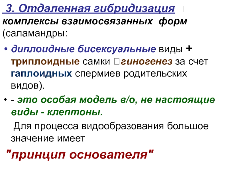 Слайд 70 3. Отдаленная гибридизация комплексы взаимосвязанных форм (саламандры: