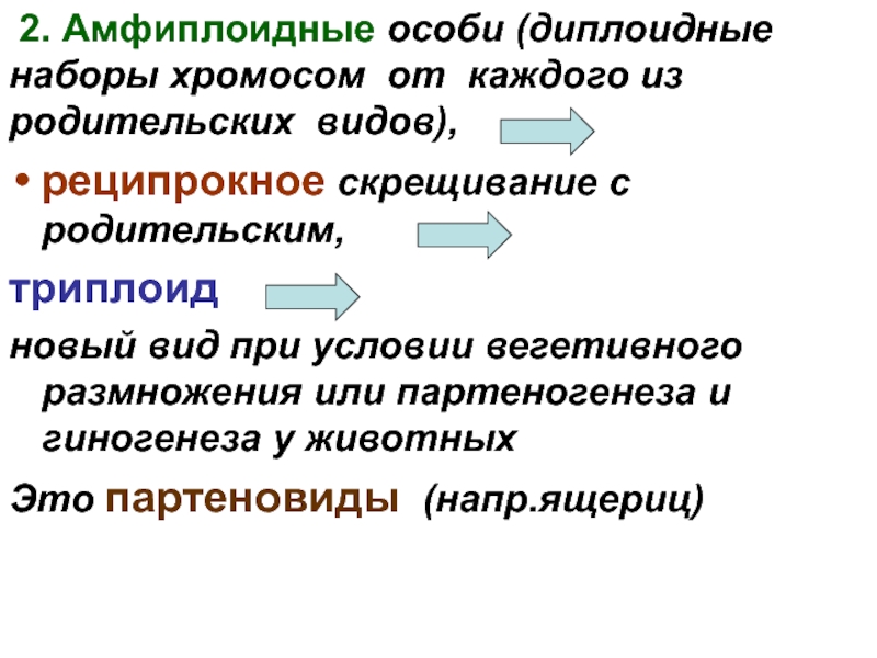 Слайд 69 2. Амфиплоидные особи (диплоидные наборы хромосом от каждого из