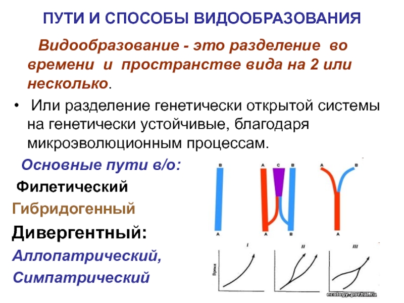 Отсюда, репродуктивная изоляция - не есть побочный продукт длительной дивергенции вида, а первичное условие возникновение вида.