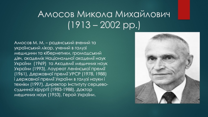 Слайд 3Амосов М. М. – видатний хірург, який один із перших