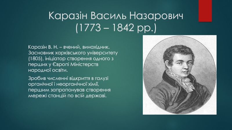 винахідник. Засновник харківського університету (1805), ініціатор створення одного з перших
