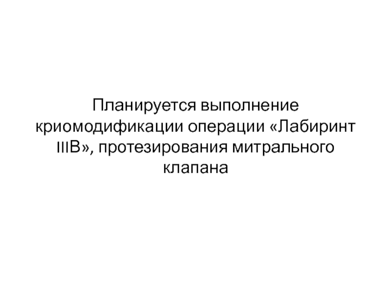 Слайд 1Видеотрансляция операции «Лабиринт IIIB», протезирования митрального клапана