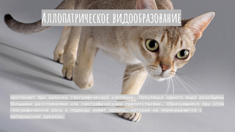 протекает при наличии географической изоляции. Популяции одного вида разобщены