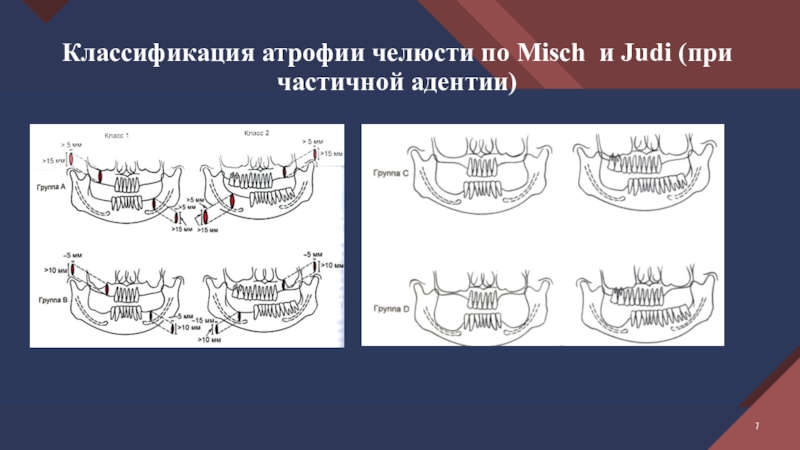 Слайд 7Классификация атрофии челюсти по Misch и Judi (при частичной адентии)