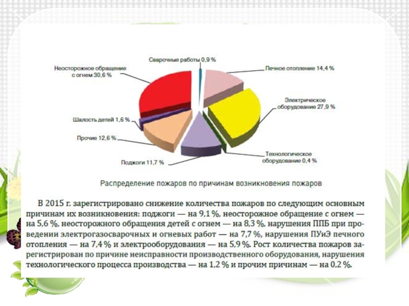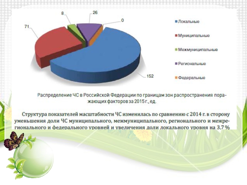 основном техногенными причинами. На долю техногенных ЧС пришлось 69,7 % от общего числа ЧС (в 2014 г. — 71 %). Таким образом, в 2015 г. доля ЧС техногенного характера уменьшилась на 1,3 % по сравнению с 2014 г.