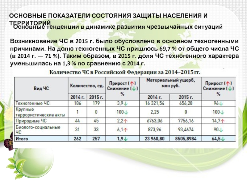 Слайд 10ОСНОВНЫЕ ПОКАЗАТЕЛИ СОСТОЯНИЯ ЗАЩИТЫ НАСЕЛЕНИЯ И ТЕРРИТОРИЙ