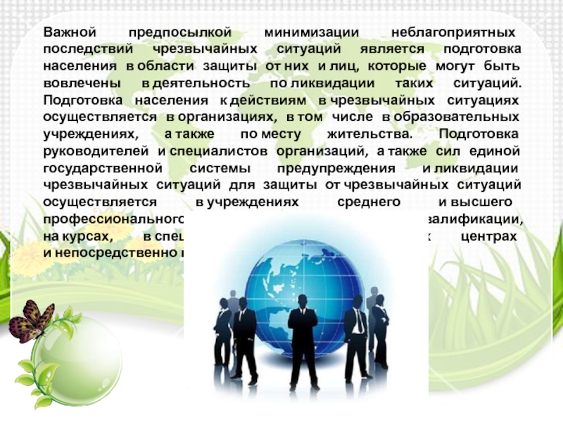Слайд 27Важной предпосылкой минимизации неблагоприятных последствий чрезвычайных ситуаций является подготовка населения