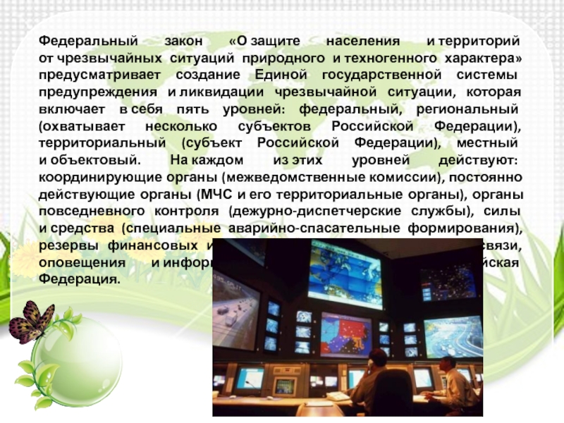 Слайд 24Федеральный закон «О защите населения и территорий от чрезвычайных ситуаций природного и техногенного характера»