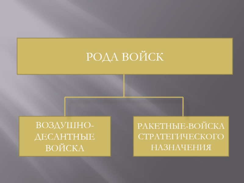 Так же существуют самостоятельные рода войск — это Воздушно-десантные войска (ВДВ) и Ракетные войска стратегического назначения (РВСН)