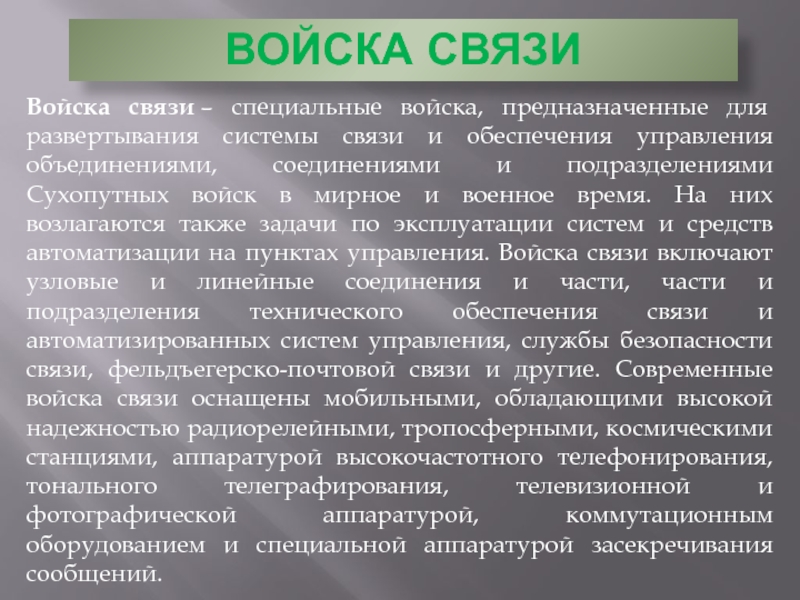Войска связи – специальные войска, предназначенные для развертывания системы связи