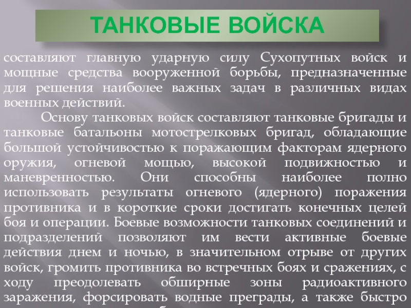 Слайд 11составляют главную ударную силу Сухопутных войск и мощные средства вооруженной