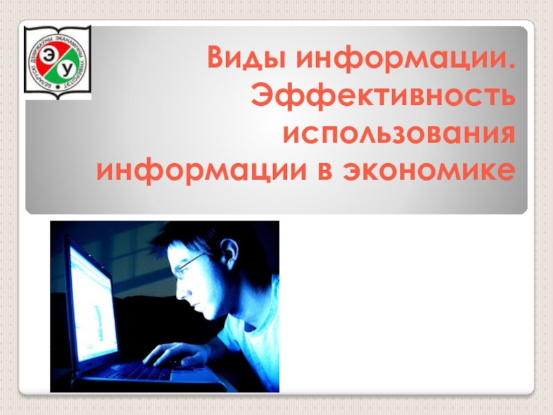 Слайд 1Виды информации. Эффективность использования информации в экономике
