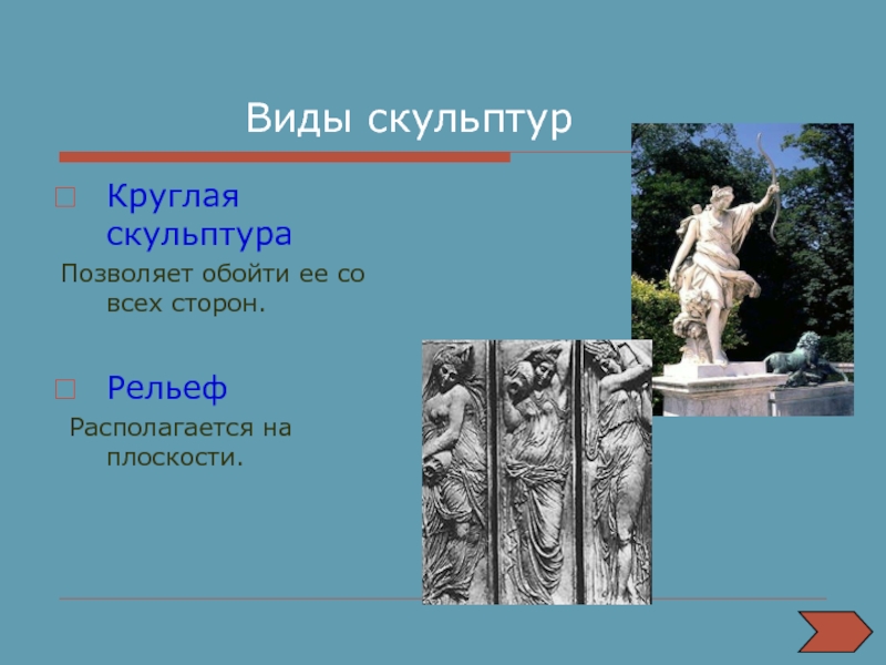 Художественно-выразительные средства скульптуры- объем, пластика, фактура материала.