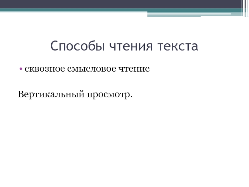 Способы чтения текстасквозное смысловое чтениеВертикальный просмотр.