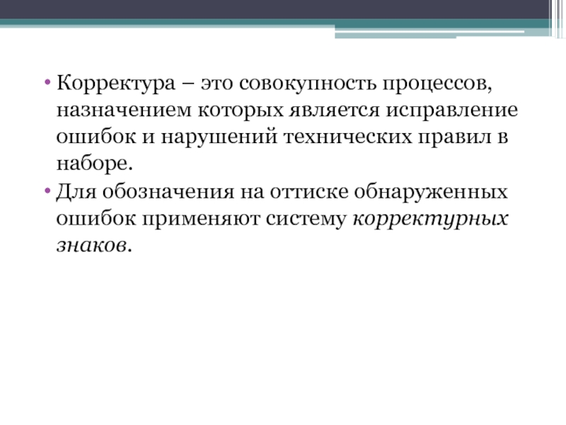 Слайд 2Корректура – это совокупность процессов, назначением которых является исправление ошибок