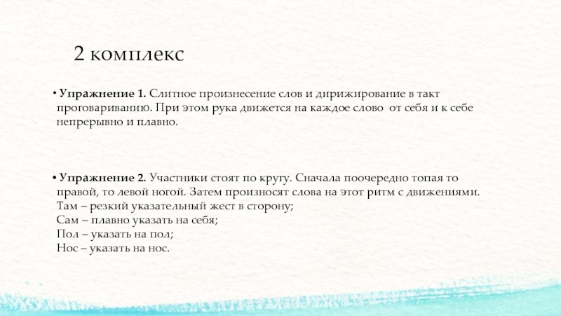 2 комплекс Упражнение 1. Слитное произнесение слов и дирижирование в такт проговариванию. При этом рука движется на каждое