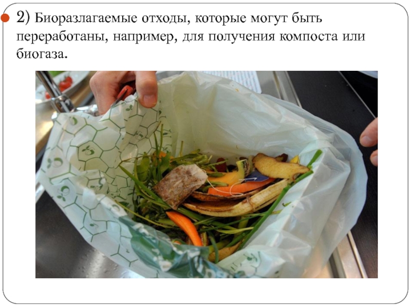 Слайд 102) Биоразлагаемые отходы, которые могут быть переработаны, например, для получения компоста