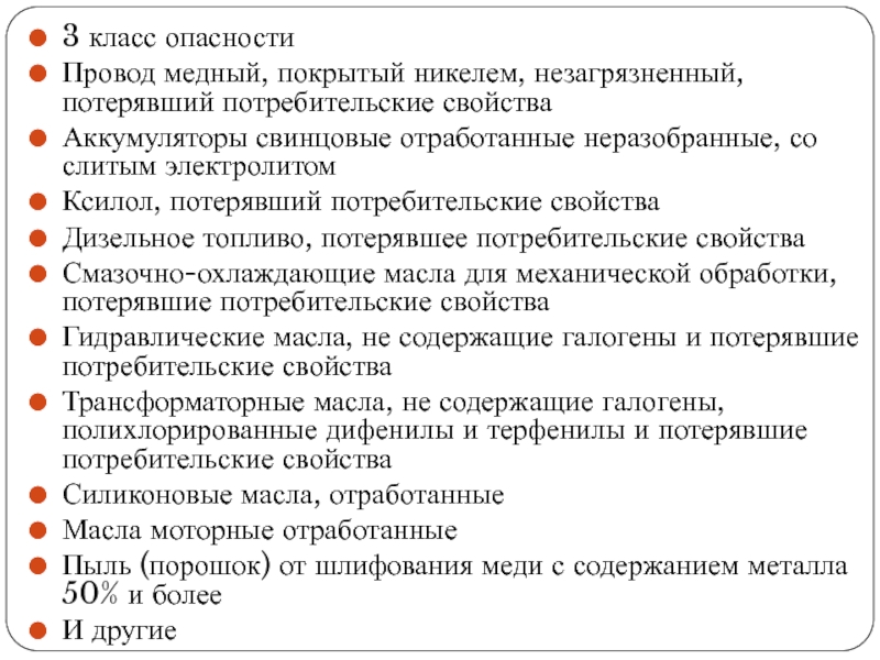Ø отходы, содержащие металлоорганические токсичные соединения олова, галогенорганические и кремнийорганические соедине-нчя;отходыщелочныхметаллов,фосфорорганическихсоединений;шламы производства тетраэтилсвинца; использованные органические растворители (в соответствии с номенклатурой продукции, закрепленной за министерством); пестициды, пришедшие в негодность и запрещенные к применению;