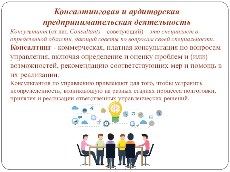 Слайд 16Консалтинговая и аудиторская предпринимательская деятельность