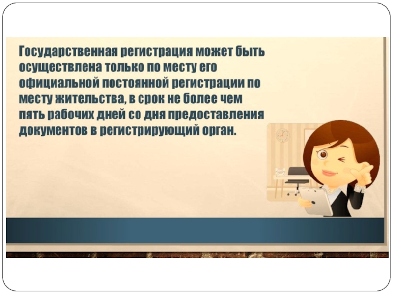 Слайд 22При государственной регистрации физического лица в качестве индивидуального предпринимателя в