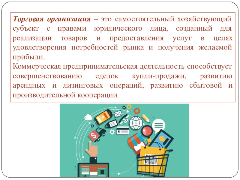 Слайд 10Торговая организация – это самостоятельный хозяйствующий субъект с правами юридического