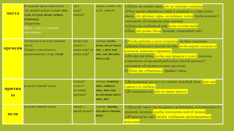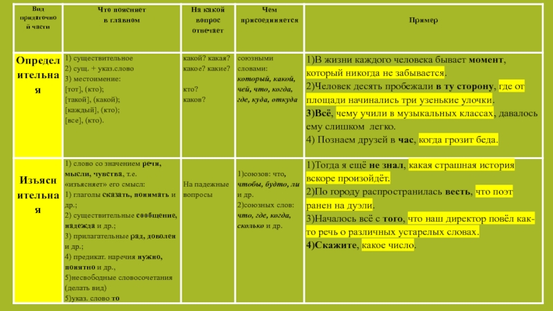 Виды придаточных предложений