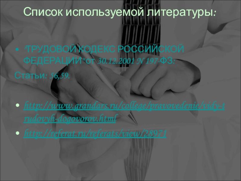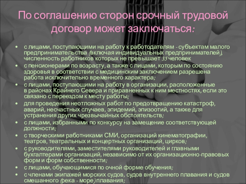 Слайд 5По соглашению сторон срочный трудовой договор может заключаться: