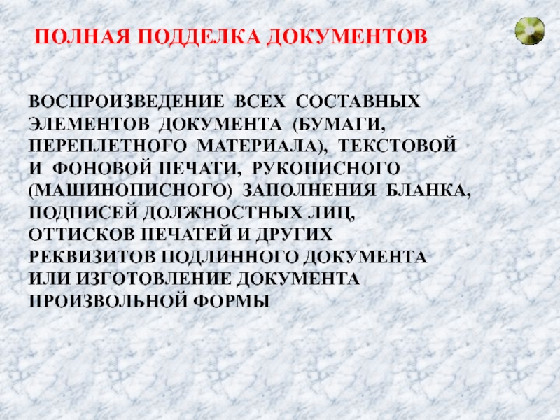 Слайд 3ПОЛНАЯ ПОДДЕЛКА ДОКУМЕНТОВ