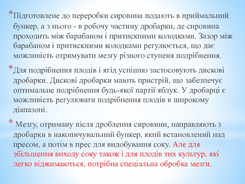 Слайд 16Підготовка плодів і ягід перед витяганням соку