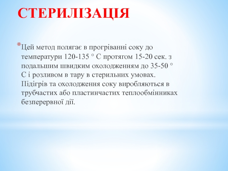 Цей метод полягає в прогріванні соку до температури 120-135 °
