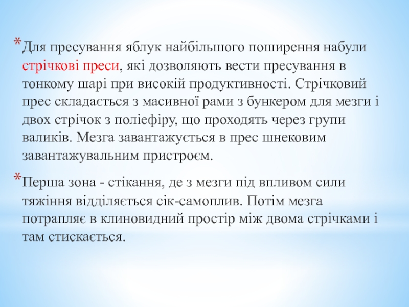 Слайд 21Для пресування яблук найбільшого поширення набули стрічкові преси, які дозволяють