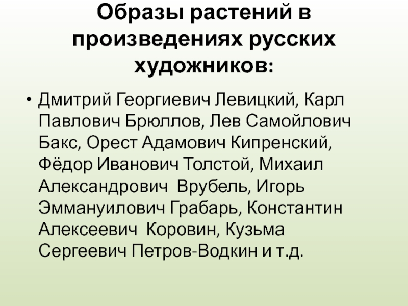 Михаил Александрович Врубель, Игорь Эммануилович Грабарь, Константин Алексеевич Коровин, Кузьма Сергеевич Петров-Водкин и т.д.