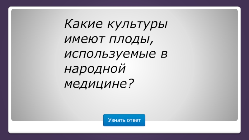 Узнать ответКакие культуры имеют плоды, используемые в народной медицине?