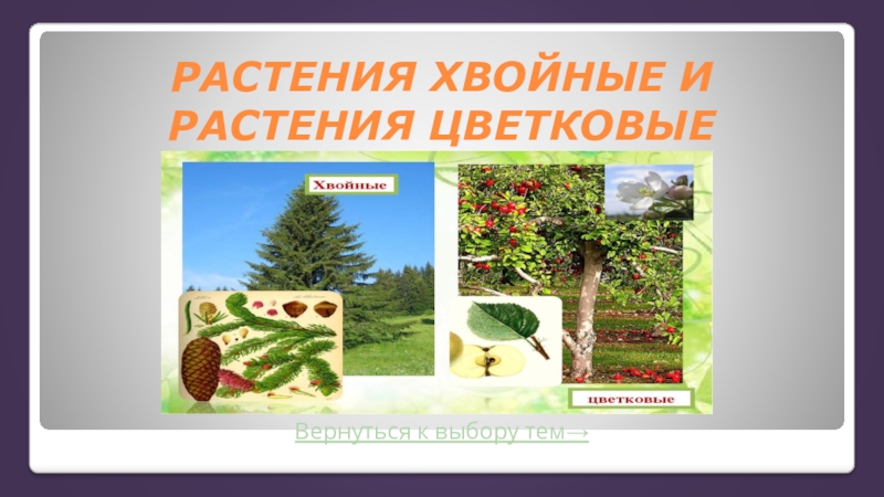 Вернуться к выбору тем→Растения хвойные и растения цветковые