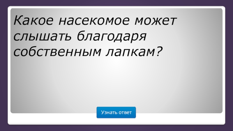 Узнать ответКакое насекомое может слышать благодаря собственным лапкам?