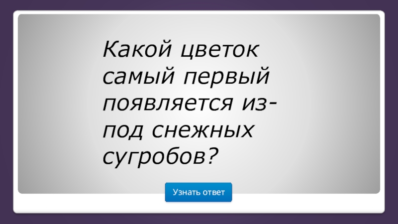 Узнать ответ Какой цветок самый первый появляется из-под снежных сугробов?