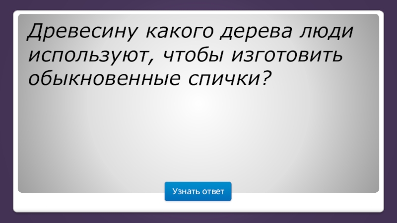 Узнать ответДревесину какого дерева люди используют, чтобы изготовить обыкновенные спички?