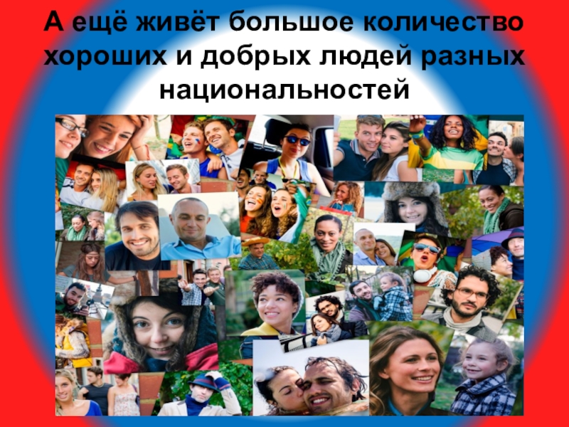 Слайд 10А ещё живёт большое количество хороших и добрых людей разных