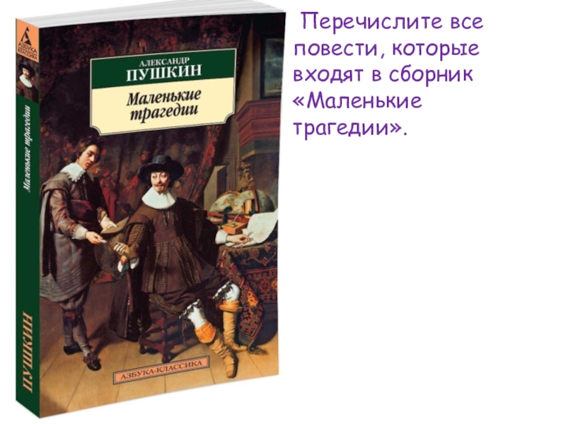 Слайд 28 Перечислите все повести, которые входят в сборник «Маленькие трагедии».