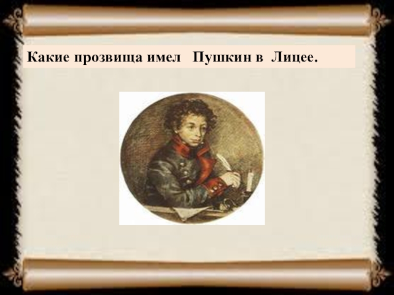 Слайд 13Какие прозвища имел Пушкин в Лицее.
