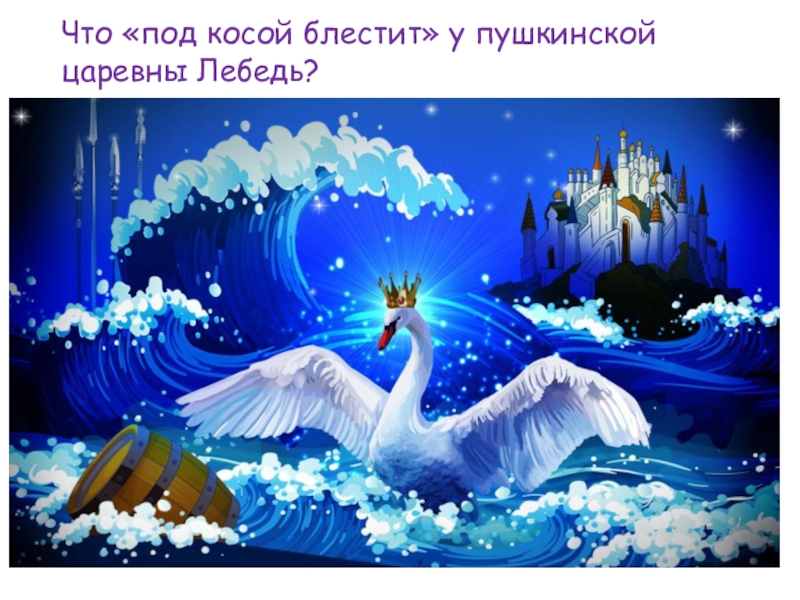 Слайд 22Что «под косой блестит» у пушкинской царевны Лебедь?