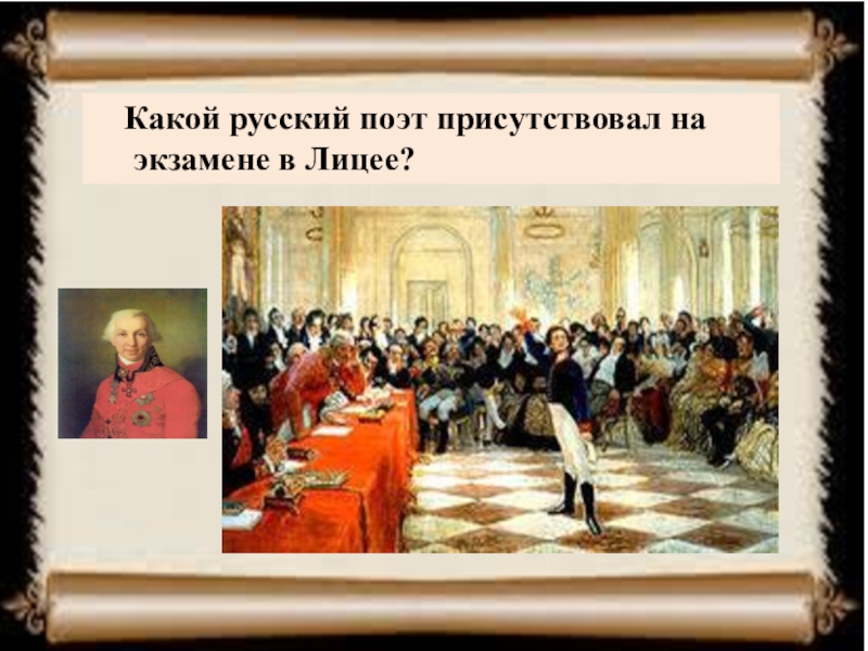 Слайд 12 Какой русский поэт присутствовал на экзамене в Лицее?