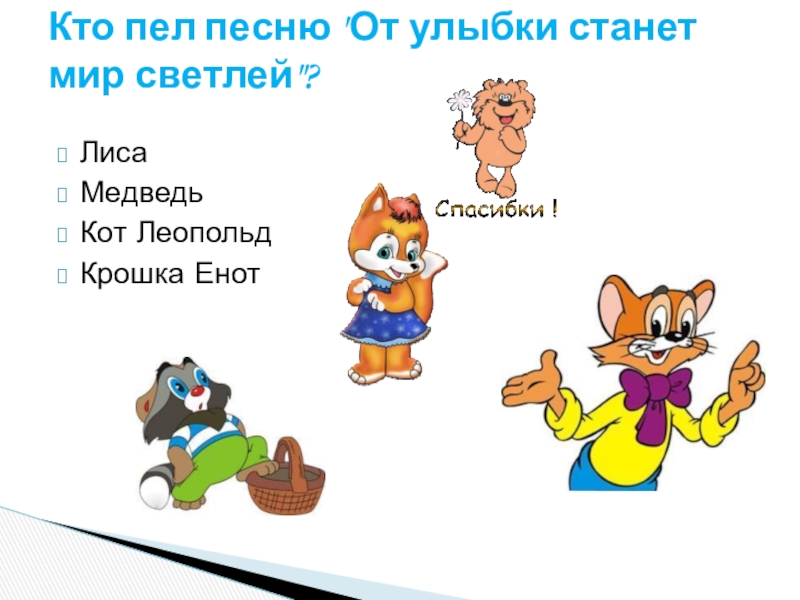 ЛисаМедведьКот ЛеопольдКрошка ЕнотКто пел песню