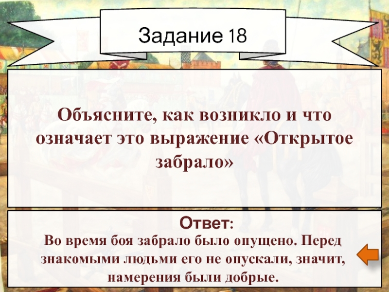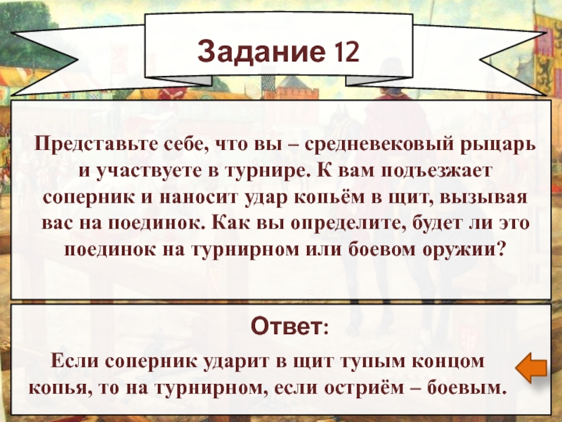 Чтобы вызвать на поединок рыцарь бросал противнику перчатку. Тот,