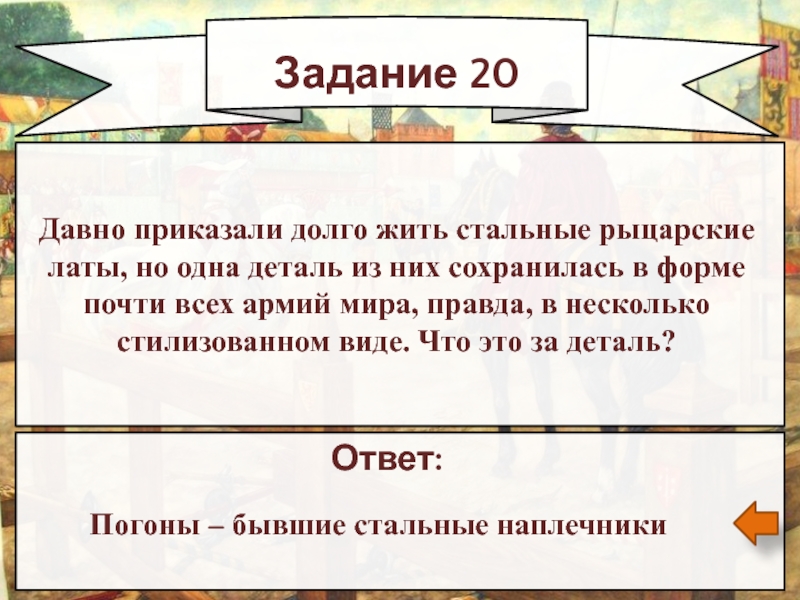 рыцарские латы, но одна деталь из них сохранилась в форме